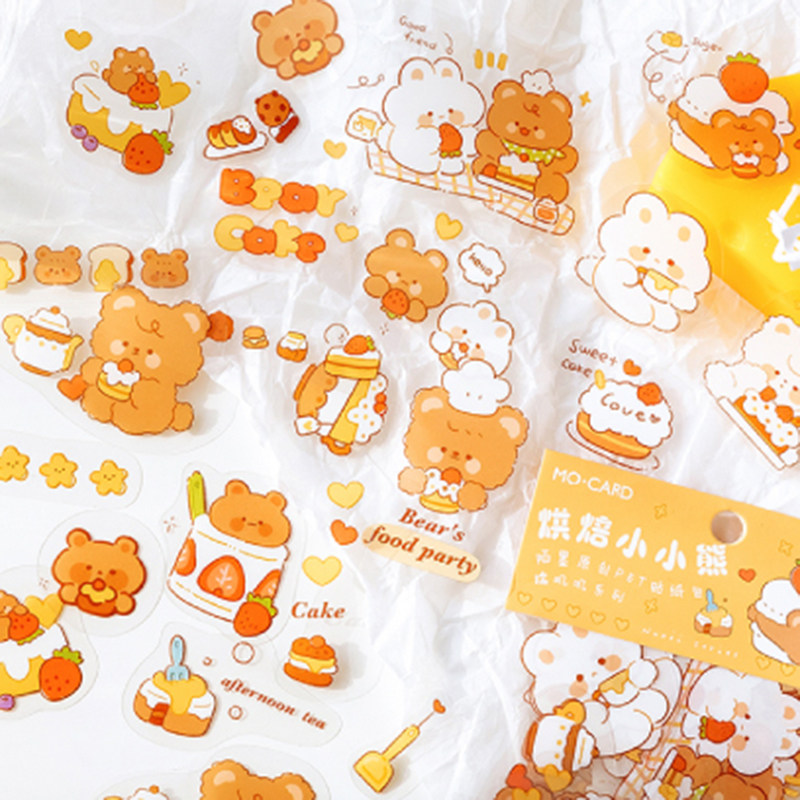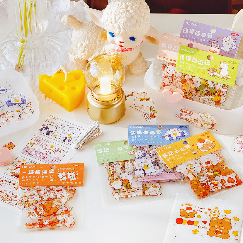 ins wind waxy jiji PET sticker pack cute animal bear girl handbook and paper stickers diary mobile phone shell decorative pattern water cup notebook diy cartoon material waterproof small fresh stickers