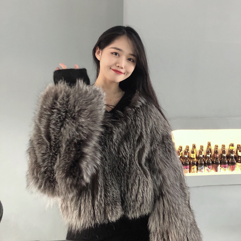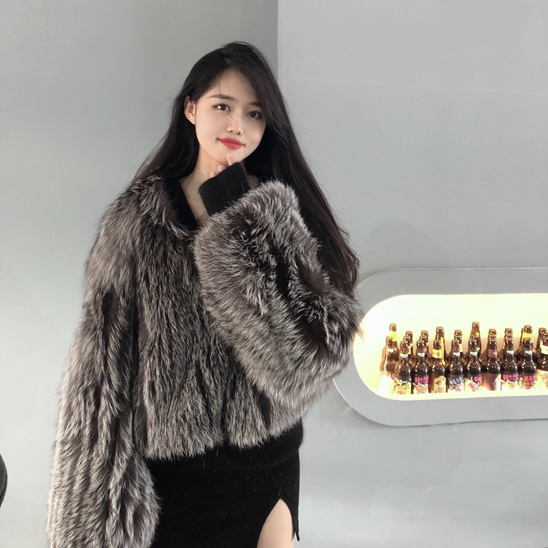 2021 winter new imported silver fox fur mink casual short hooded fur coat fox fur fashion