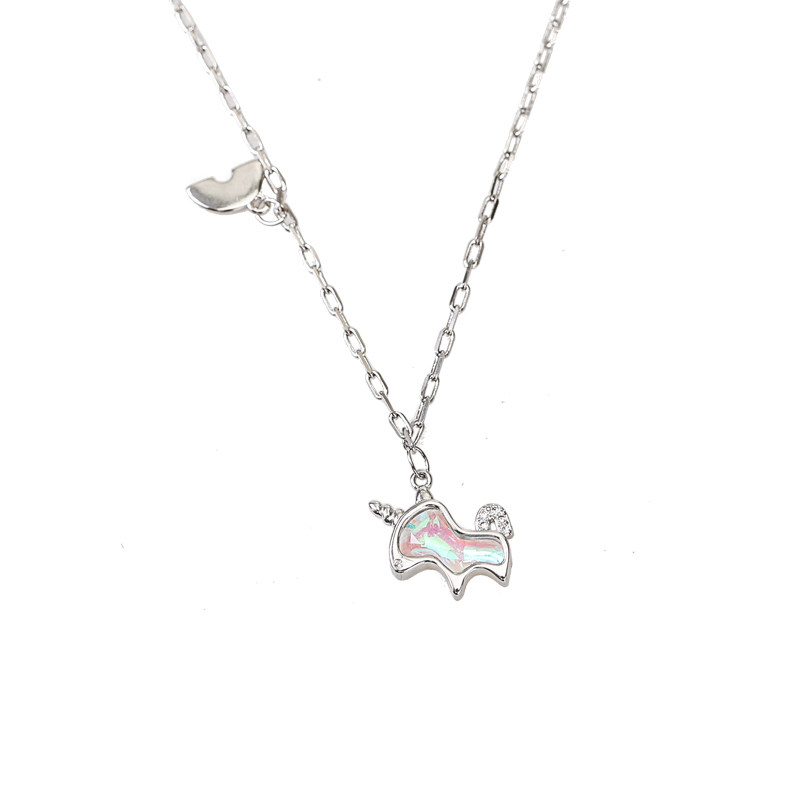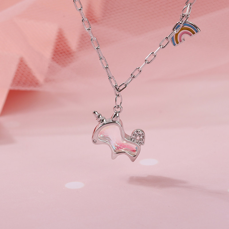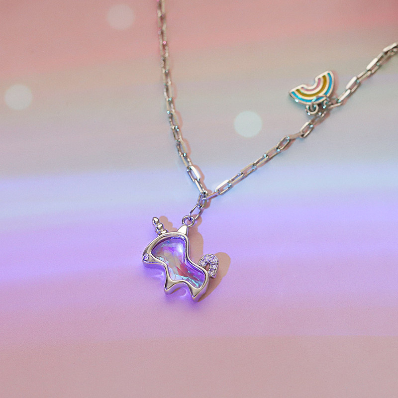 925 sterling silver rainbow unicorn necklace for women 2022 new light luxury niche design simple temperament collarbone chain