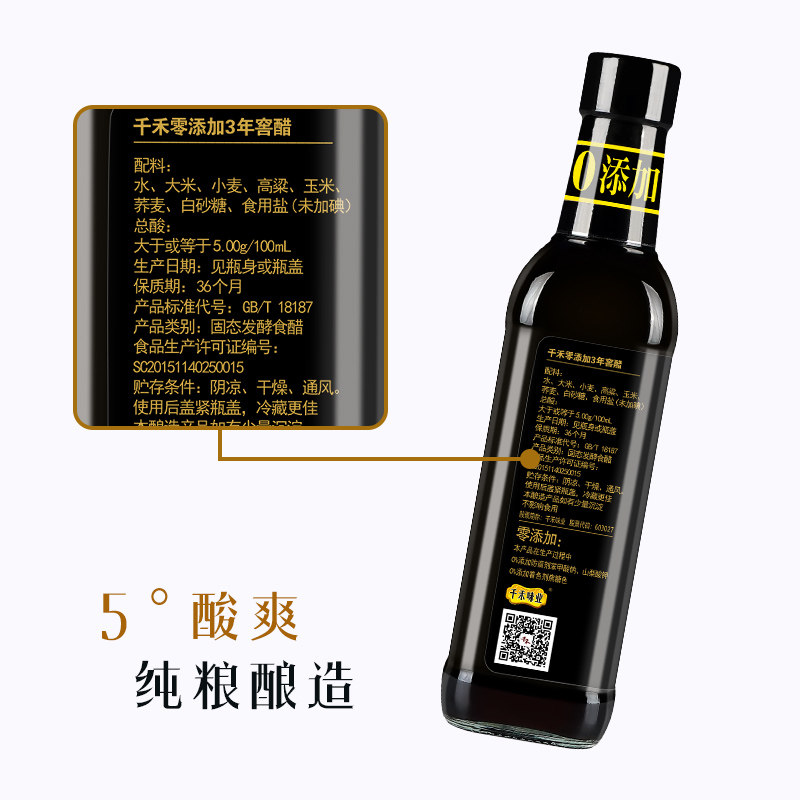 (Qianhe Zero Added Vinegar) Cellar Vinegar 3 Years 500ml*2 Brewed Vinegar Puree Vinegar Cold Vinegar Cooking Home