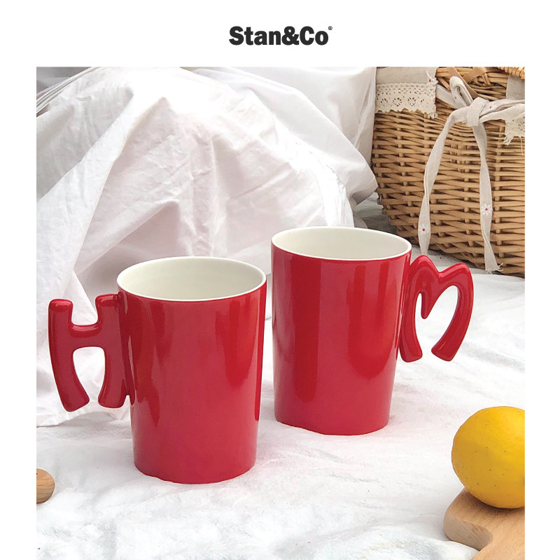 StanCo Creative Alphabet Red Ben New Year Mark Cup Lovers Ceramic Mug Birthday Companion Gift
