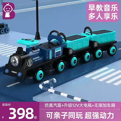 Electric model-blue locomotive 1 section blue car music spray intelligent early education electric model-Red Locomotive 1 yellow car music spray intelligent early education electric model-Green