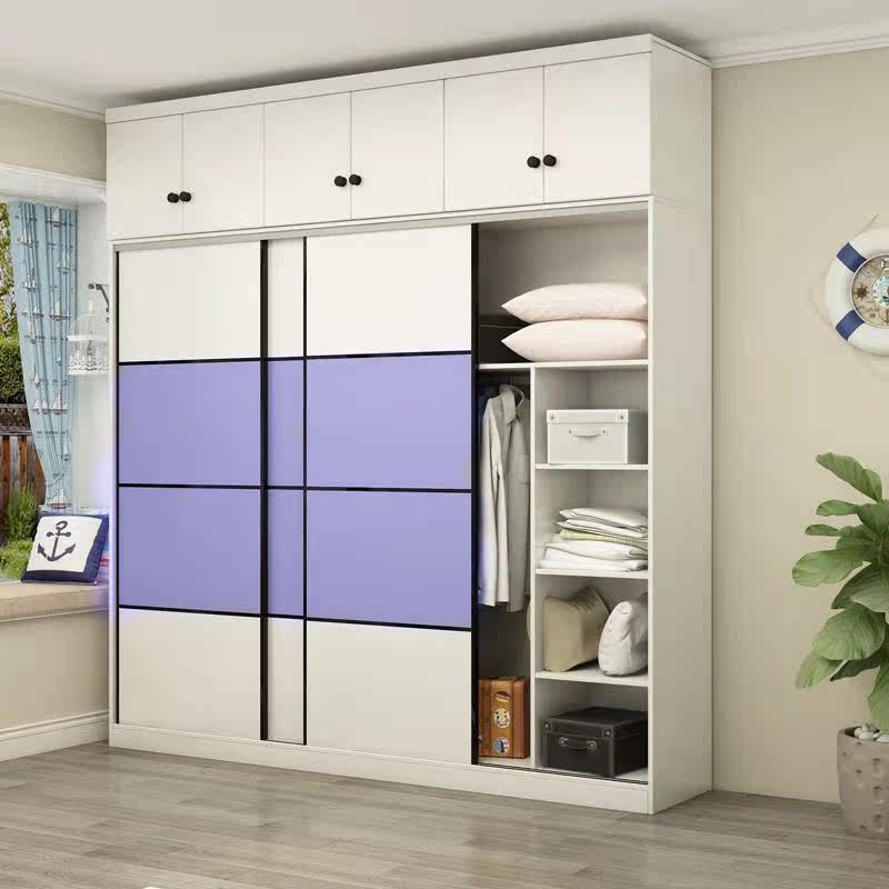 Modern solid wood sliding door wardrobe European-style small apartment bedroom large wardrobe can be customized household sliding door storage wardrobe
