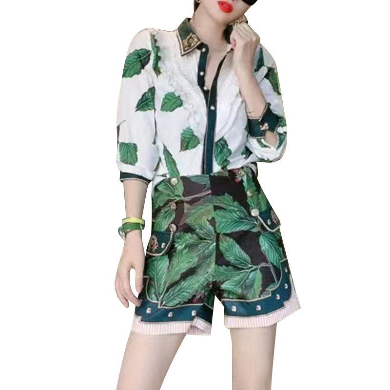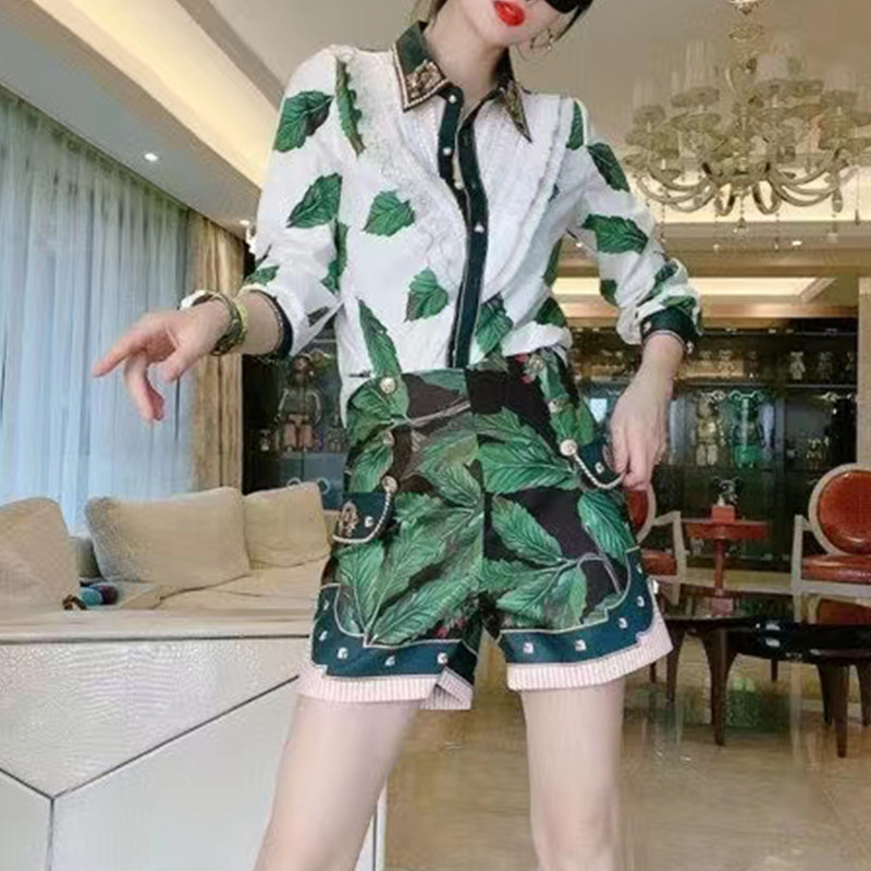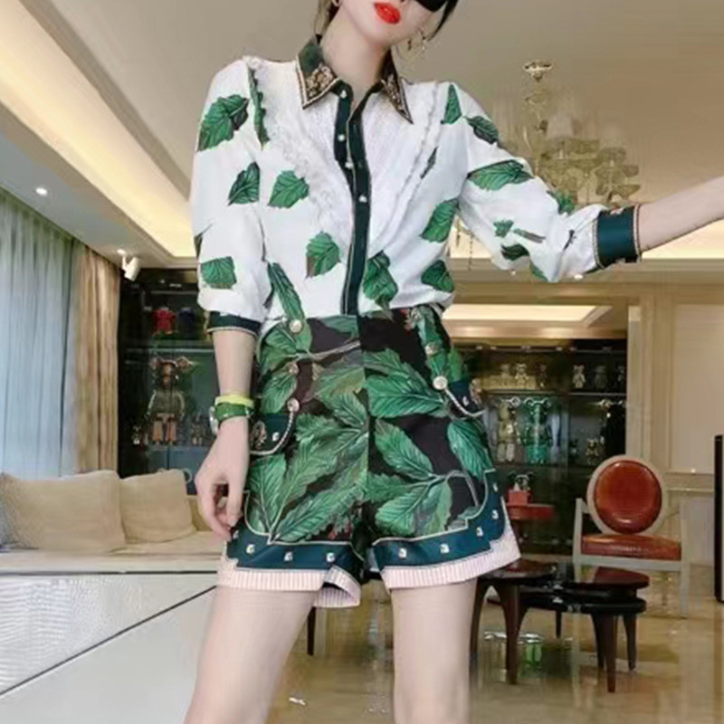 High-end ladies temperament fashion green wide-leg shorts suit women's summer 2022 new shirt to wear two-piece suit