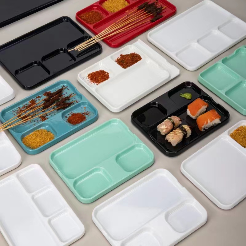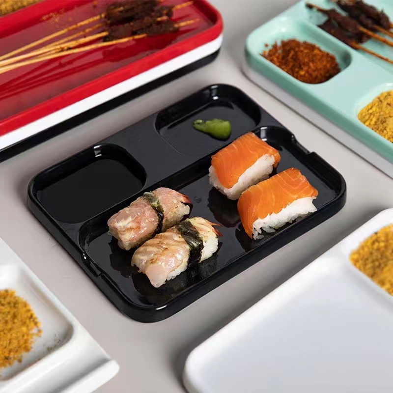 Melamine tableware barbecue shop dipping sauce plate Korean barbecue multi-grid one-piece seasoning plate sauce sub-grid seasoning plate