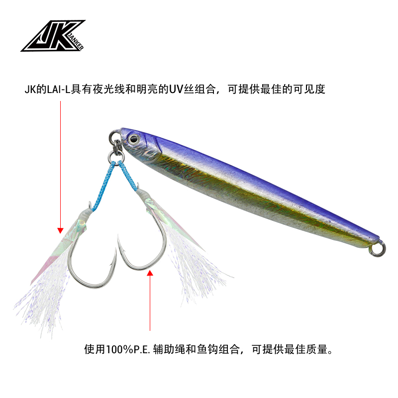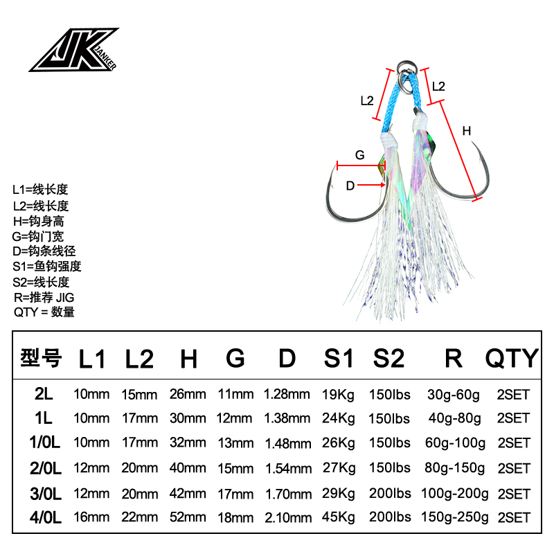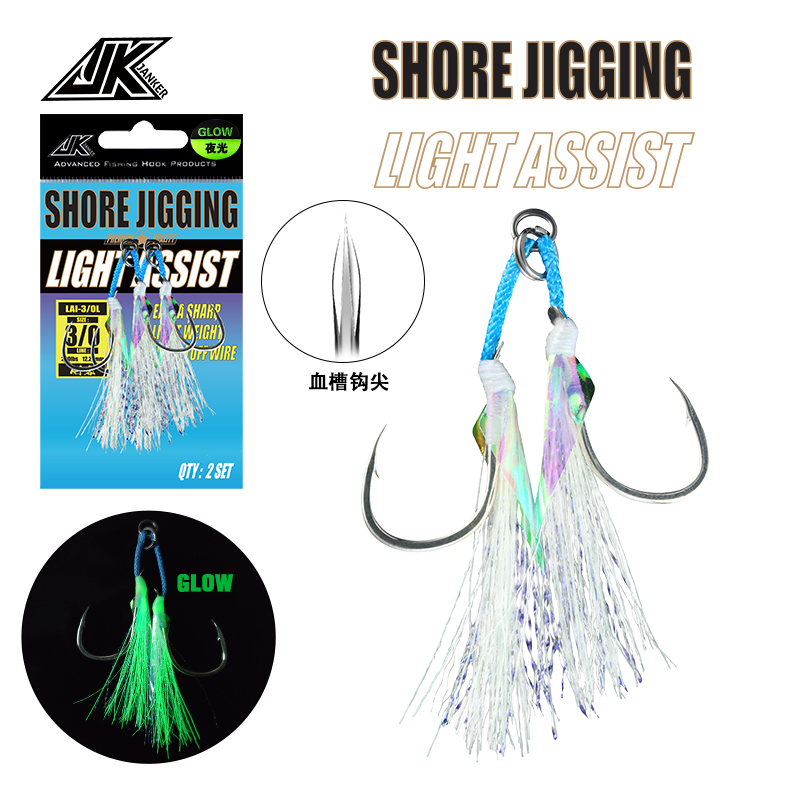 JK Night Iron Line Hook LAI Slow Rock Hook 1#-4 0 Flash Night Bright than Silk Sheet has been tied to fish hook 2 pairs