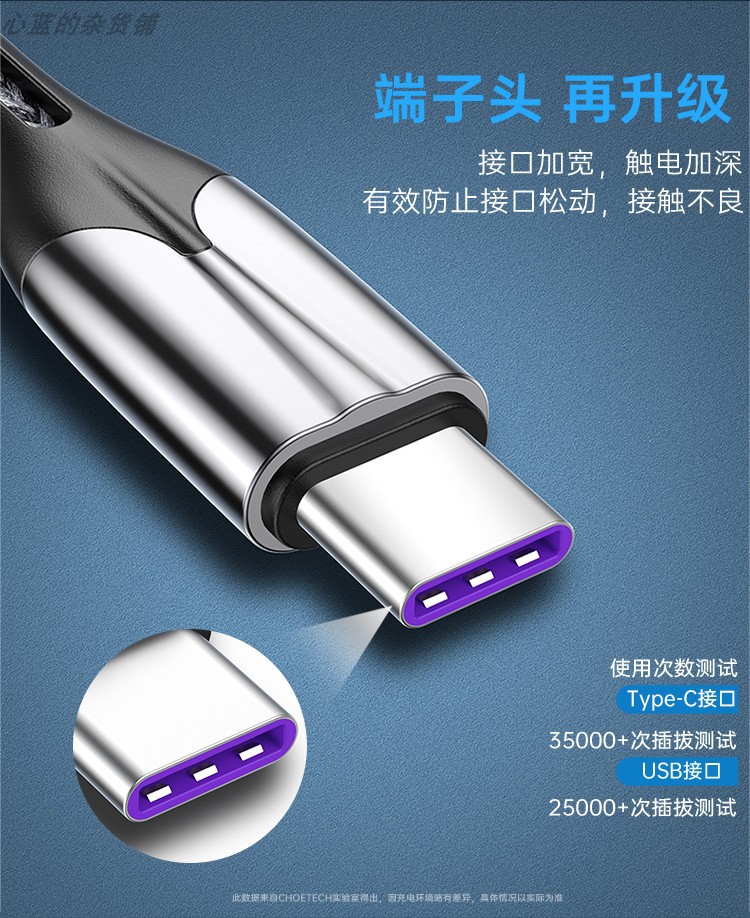 Type-C data charging cable 5A fast charging is suitable for Mate40Pro 30 20 P40 30 LeTV Xiaomi Meizu