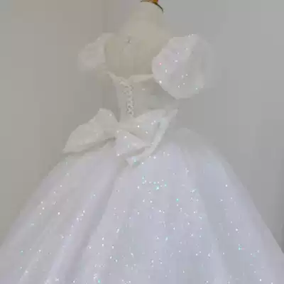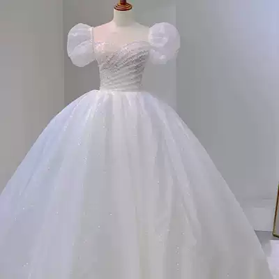 French main wedding dress 2021 new bride dress luxury retro premium sense big tailing Starry Sky small man summer