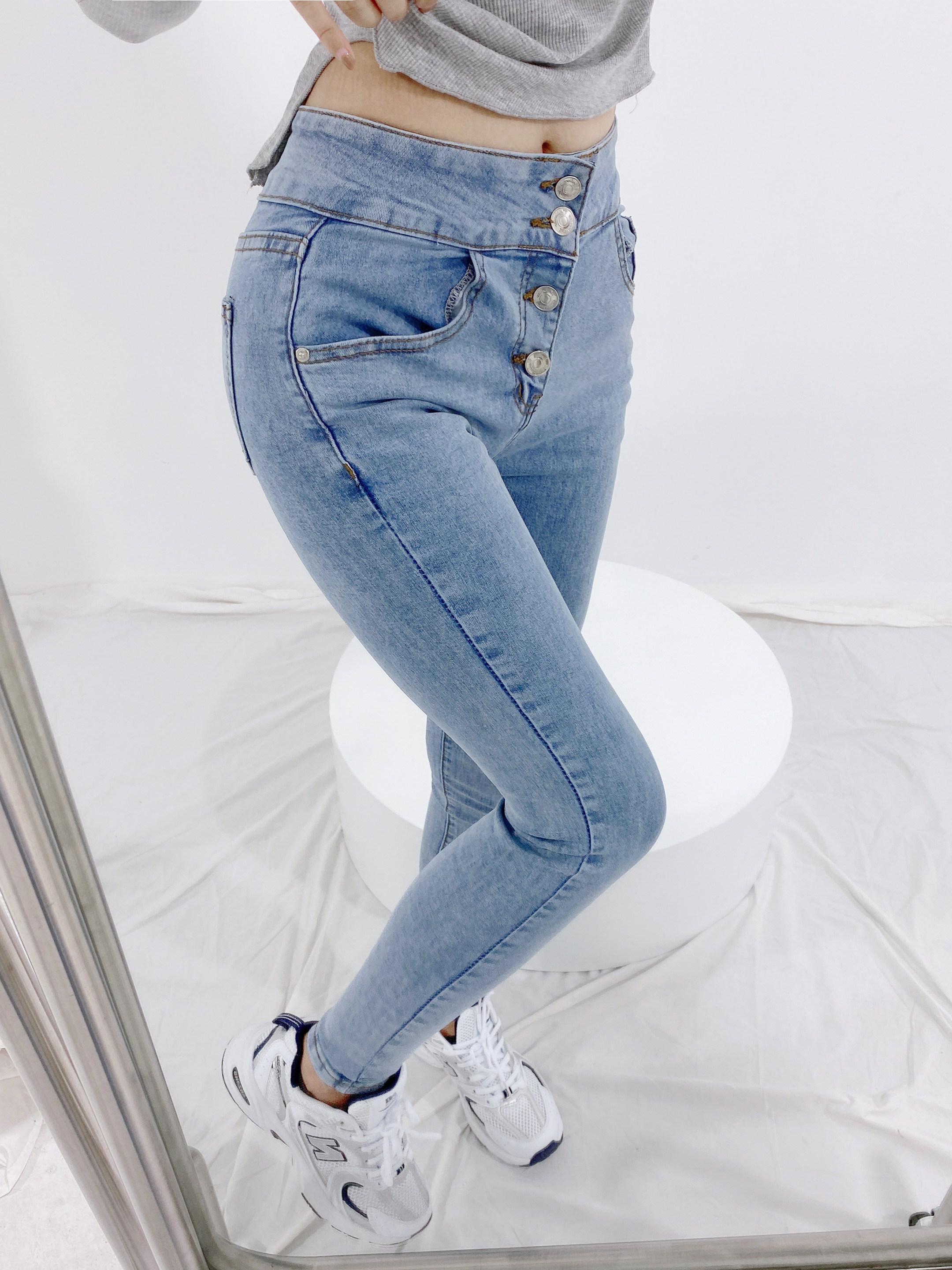Taobao women's model headless wind to the mirror selfie wind photography Zhang Xiaonan home style jeans sweatpants shooting