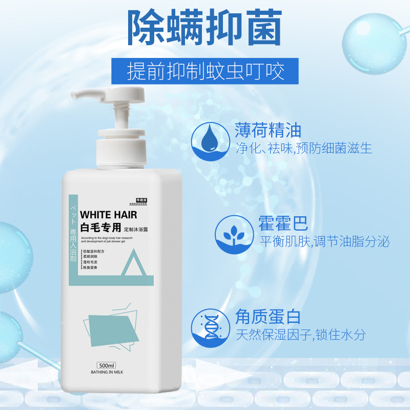 White hair special dog shower gel Bichon Pomeranian shower gel sterilization, mite removal, deodorization and antipruritic puppy bath shampoo