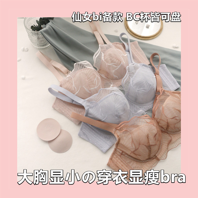 Big breasts show small underwear women's breasts anti-sagging breast shrinking thin bra summer ultra-thin non-sponge lace bra