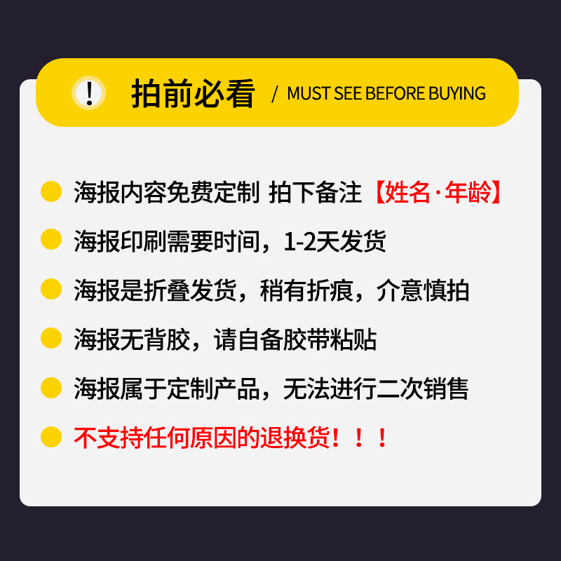 Special Birthday Poster (Uncustomizable) 80x133cm A Birthday Poster (Customized Name Age) Size 90x120cm B Birthday Poster (Customized Name)