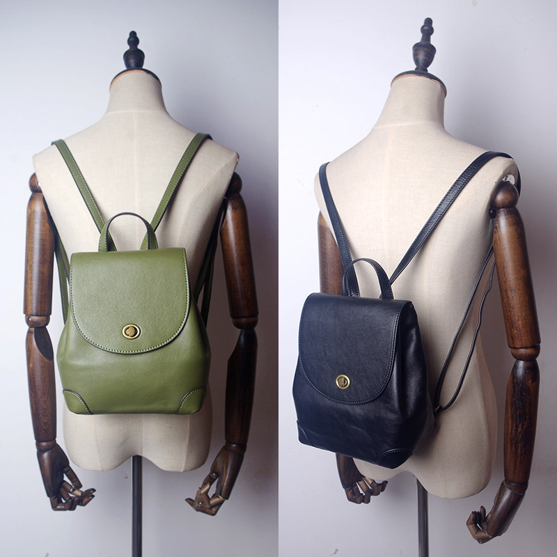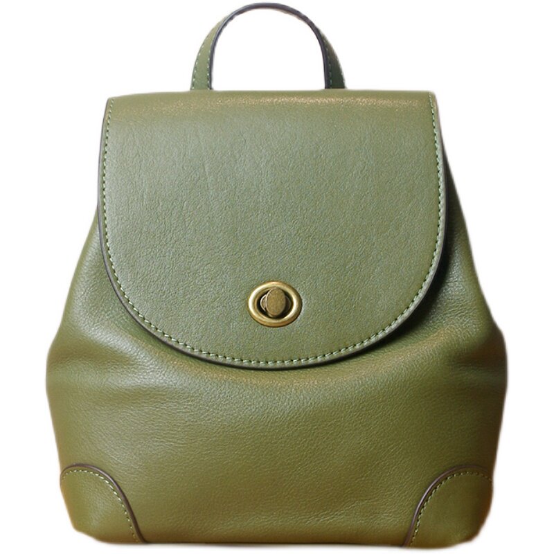 Original niche leather backpack women's mini bag new simple fashion green first layer leather small backpack
