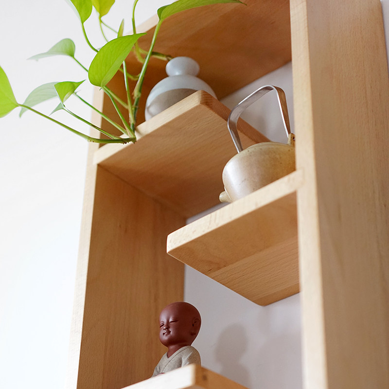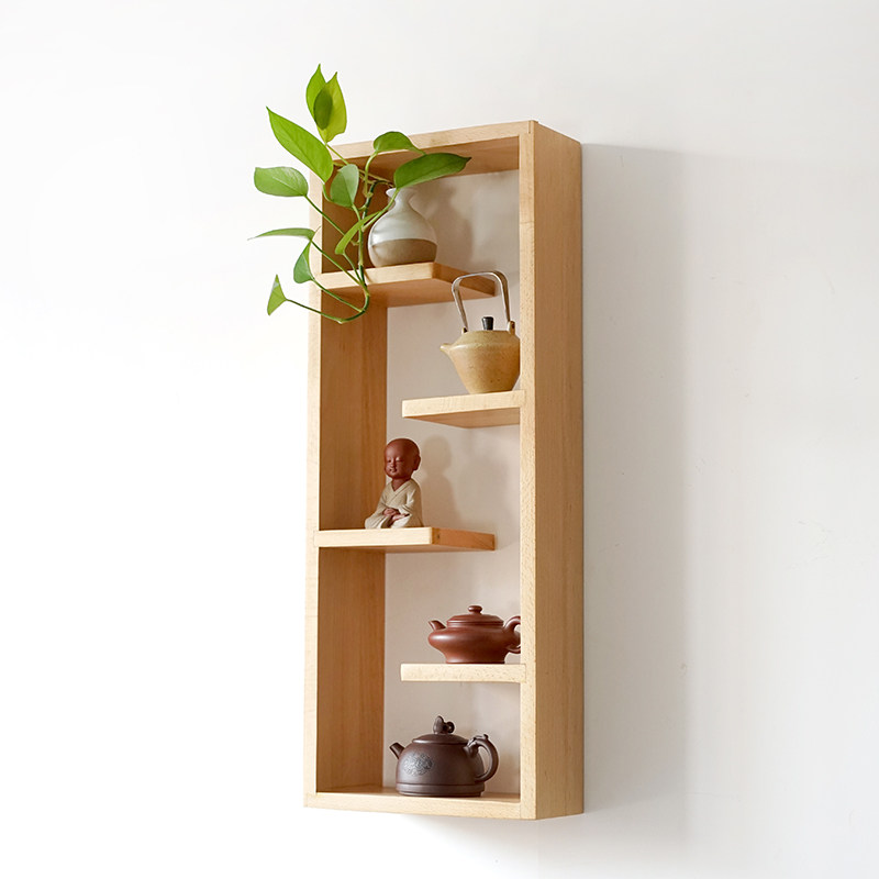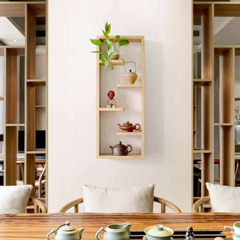 New Chinese Wall Wall Shelve Tea Room Display Shelf Teapot Collection Shelf Meditation Solid Wood Hanging Wall Partition Shelf Containing shelf