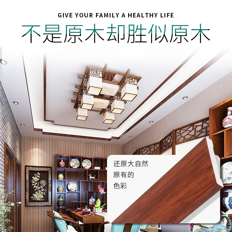 Chinese living room ceiling shape black walnut flat waist line pvc wall TV background wall border shape decoration