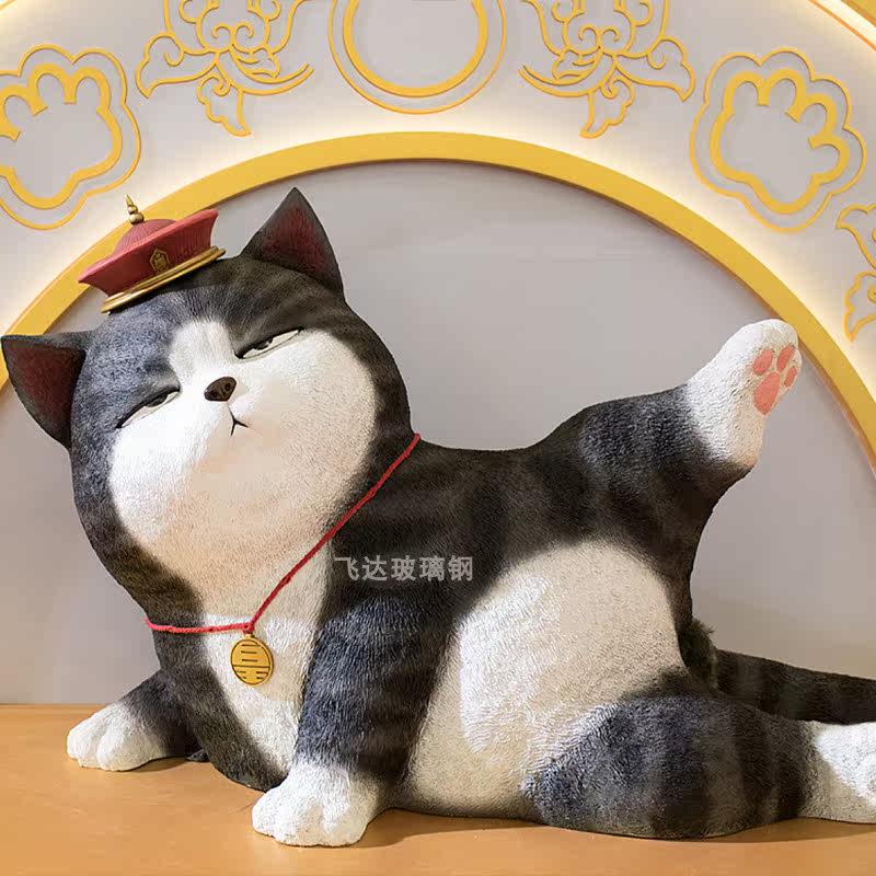 Fiberglass cartoon animal dining room Meichen pet sculpture Wuhuang cat cat shopping mall doll floor decoration custom