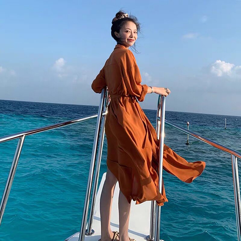 Sanya Vacation Costume 2022 New French - style holiday beach dress dress for mid - and - long - edition seaside holiday beach dress