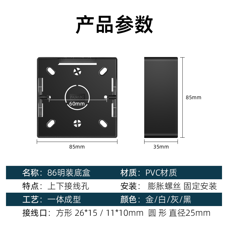 Black switch box clear bottom box 86 type open box home junction box bright box dark change bright socket box base