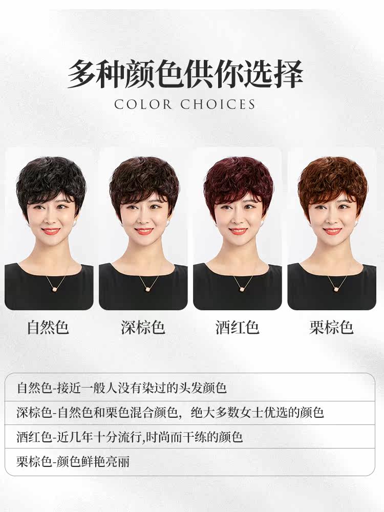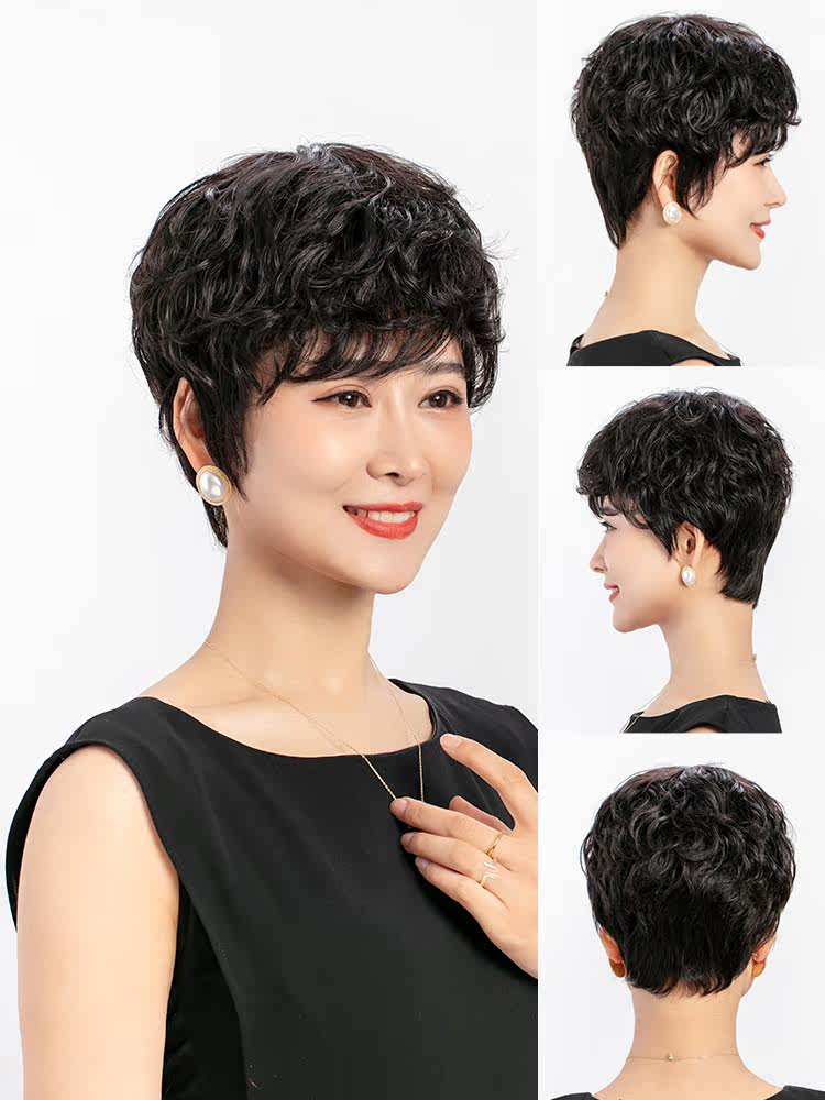 Wig lady short hair summer middle-aged and elderly simulation human hair natural bangs mother real hair full headgear curly hair