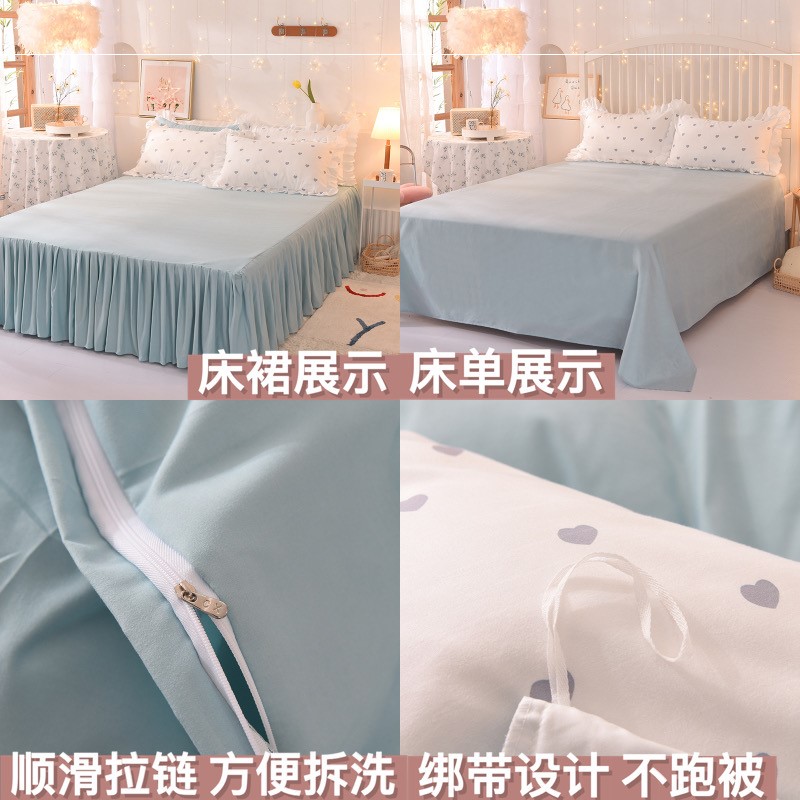 Tatami bed single-sided bed skirt quilt student dormitory single quilt cover four-piece princess style girl heart