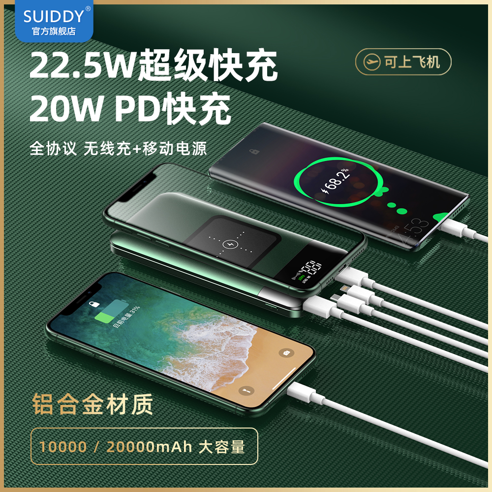 (US SUIDDY) 20000 mAh wireless mobile charging 22 5W super fast charge flash applied to the Apple 12vivo Xiaomi oppo mobile phone large-capacity general action electric