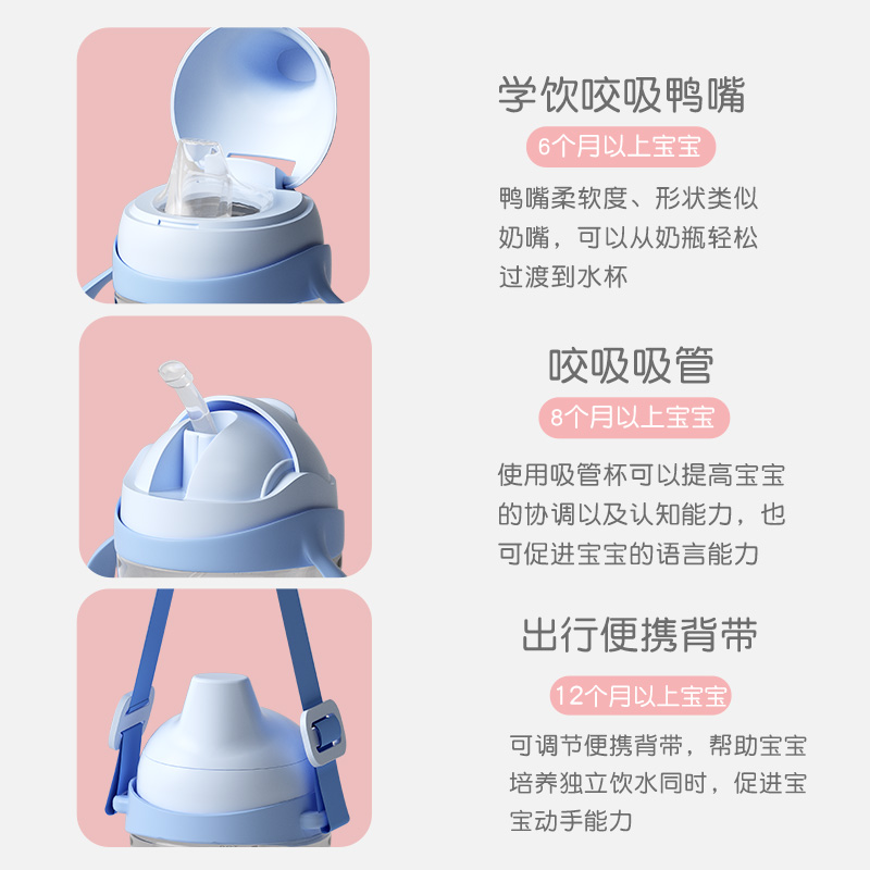 cuipo school drinking cup baby duckbill suction cup two-in-one anti-choking child straw water mug 6 months