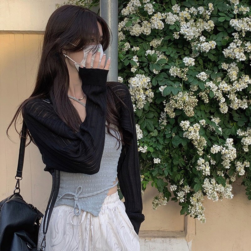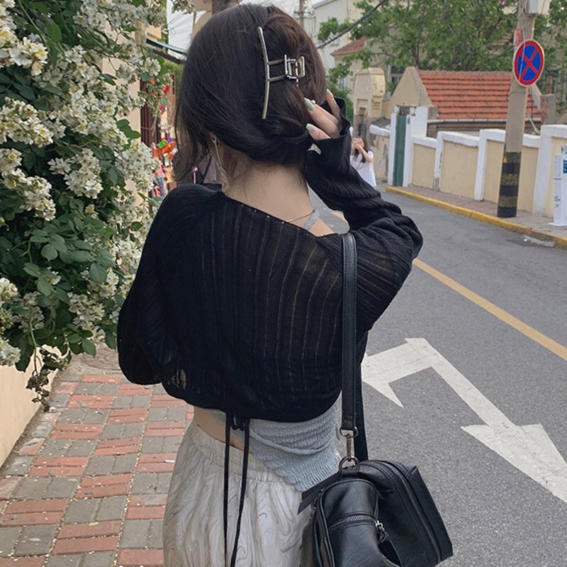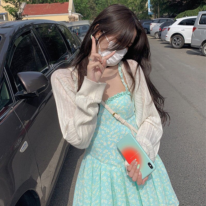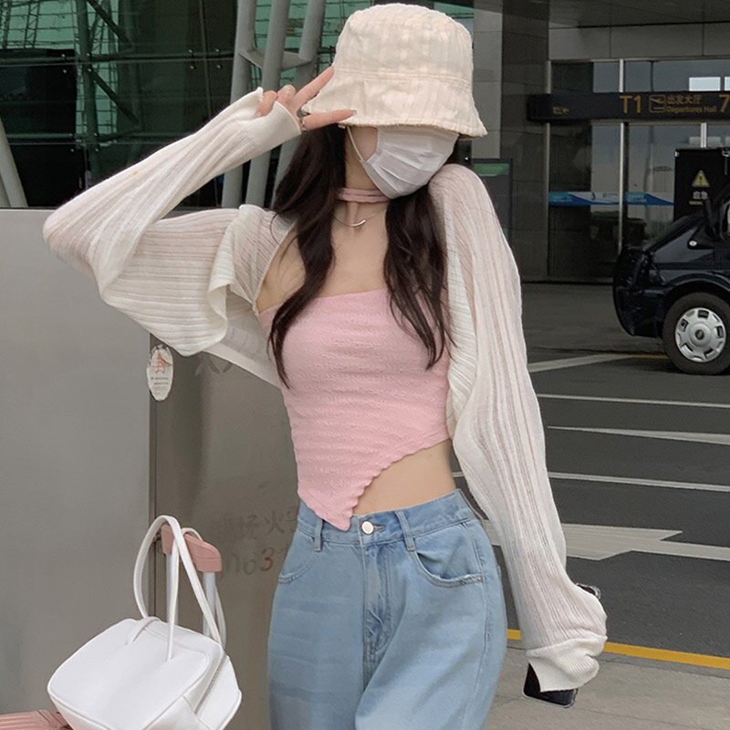 2022 summer new ice silk knitted cardigan women's thin shawl with a short blouse French small vest coat