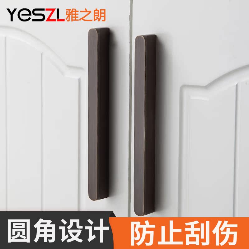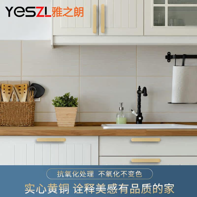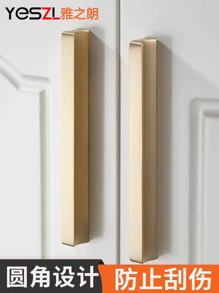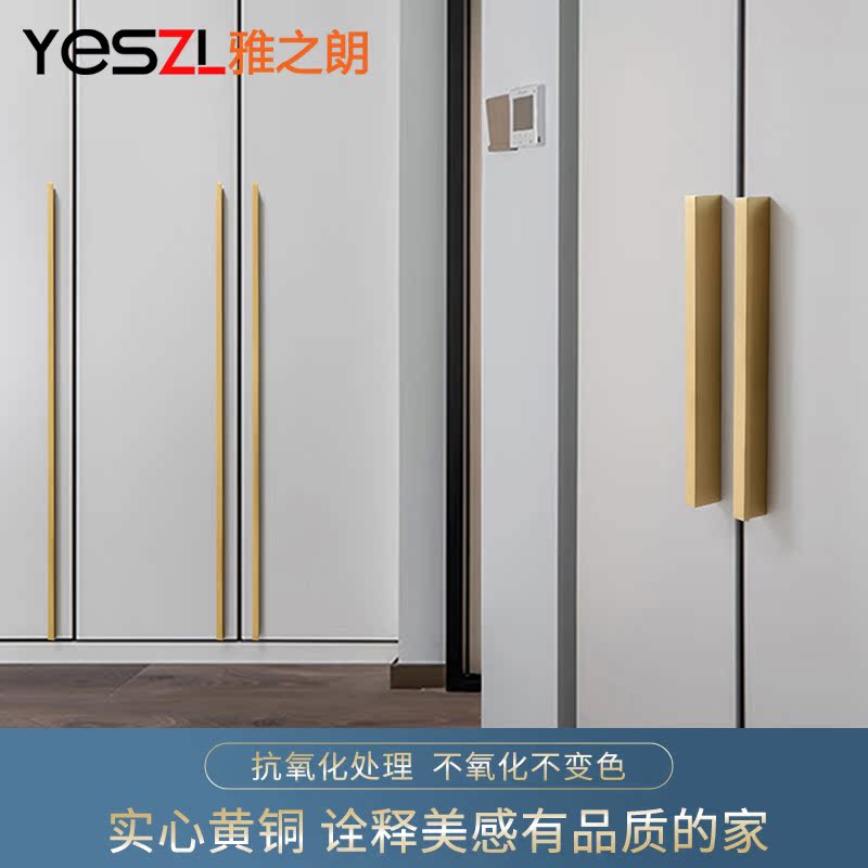 All-copper wardrobe handle modern minimalist high-end drawer long version light luxury golden T-shaped overall cabinet pure copper door handle