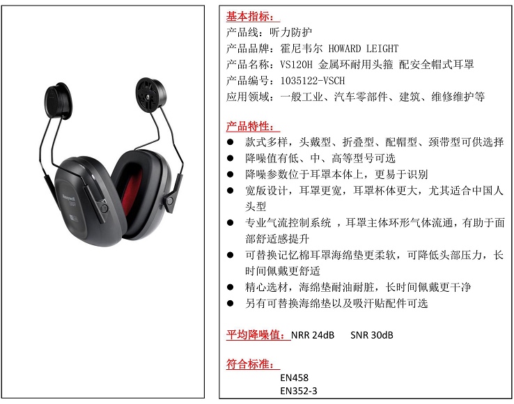 Honeywell1035122-VSCH VS120H with helmet type protective earmuffs noise reduction earmuffs