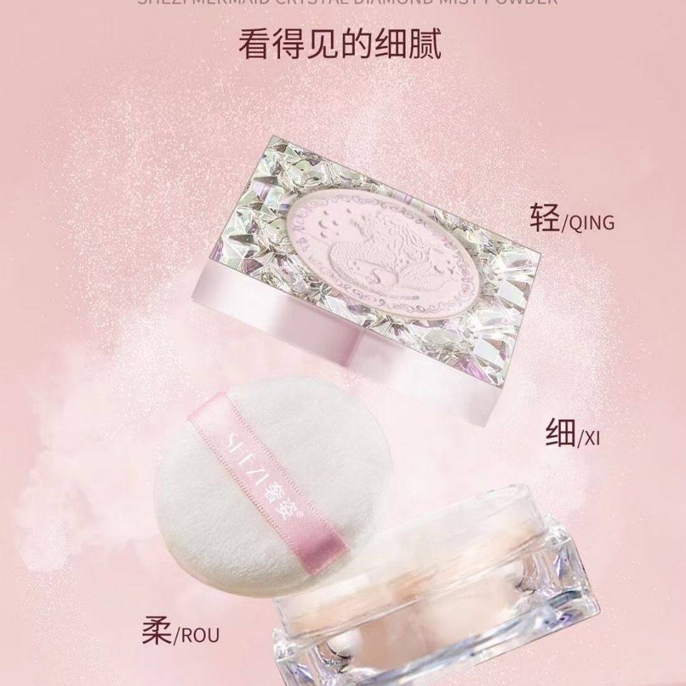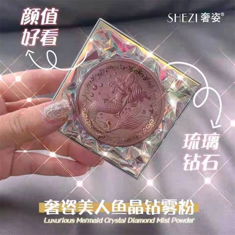 Luxurious new product mermaid crystal diamond mist powder makeup powder long-lasting oil control waterproof anti-sweat does not take off makeup natural loose powder