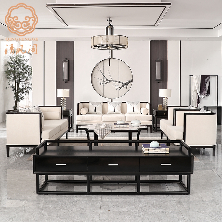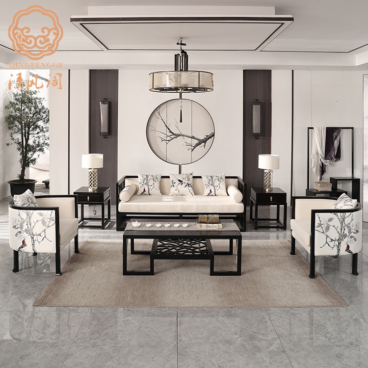 New Chinese Solid Wood Living Room Double Zen Sand Discovery Supervised Luxury Chinese Wind Hotel Villa Furniture Customized
