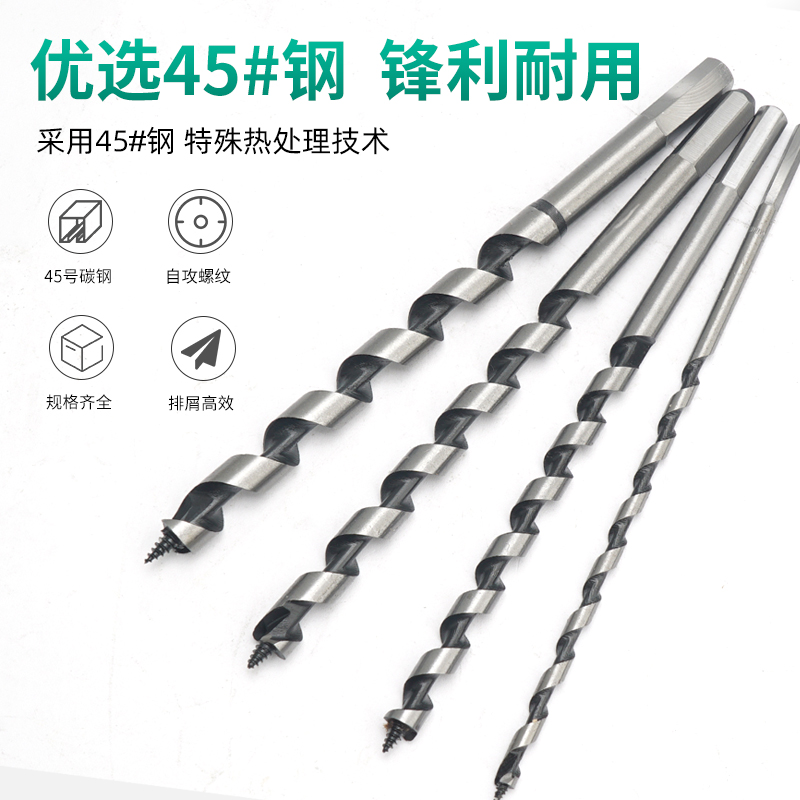 Ileko woodworking deep hole open pore machine three-tip four-edge support for hole-in-hole chambering lengthened hexagonal shank twist drill bit-Taobao