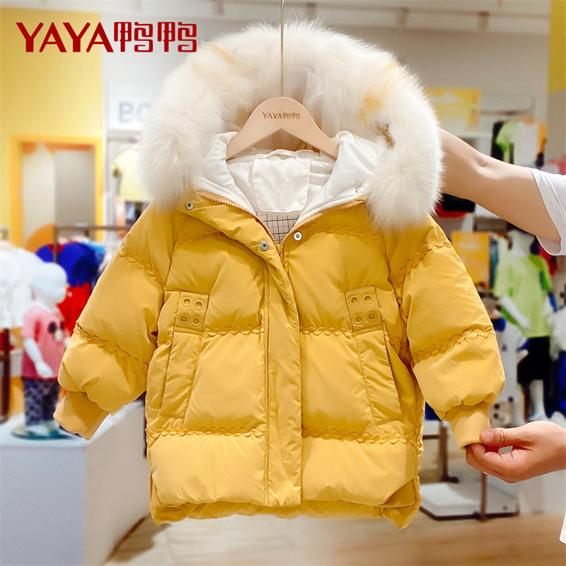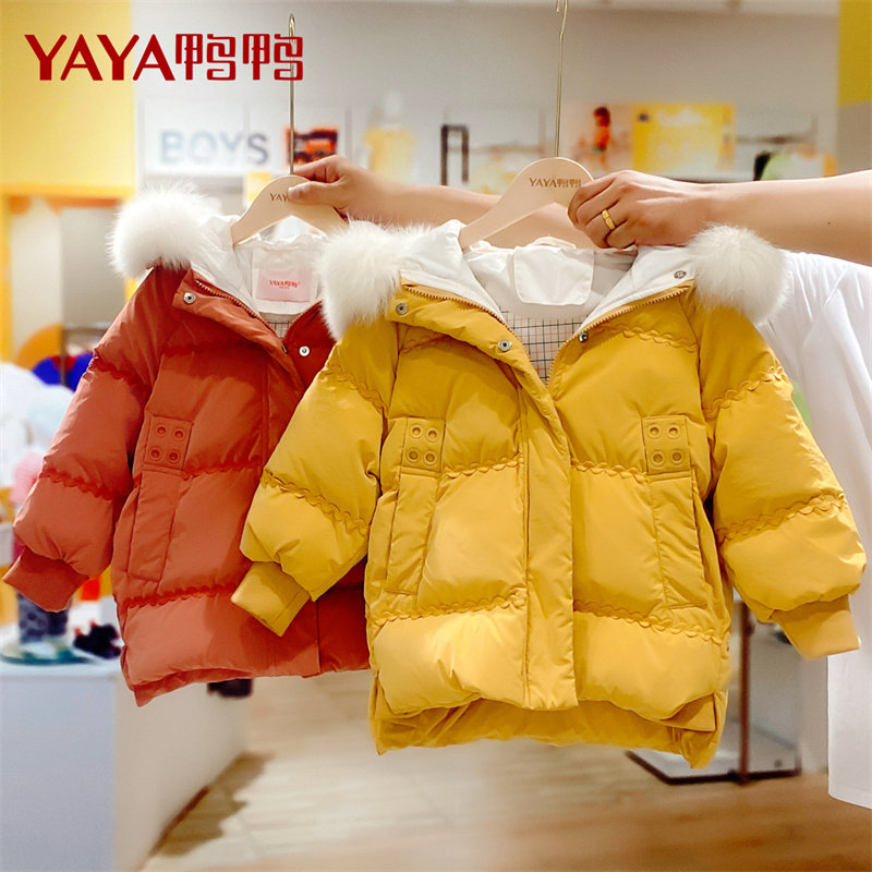 Duck Duck Children's Down Jacket Children's Clothing 2021 New Medium Children Warm Girls Long White Duck Coat Winter