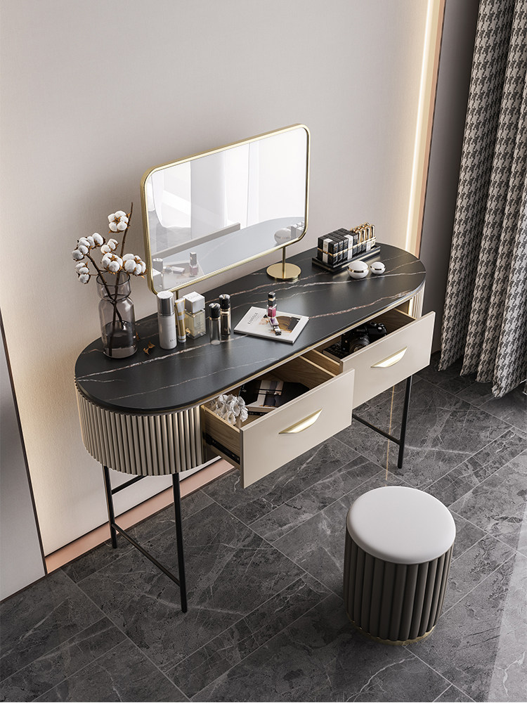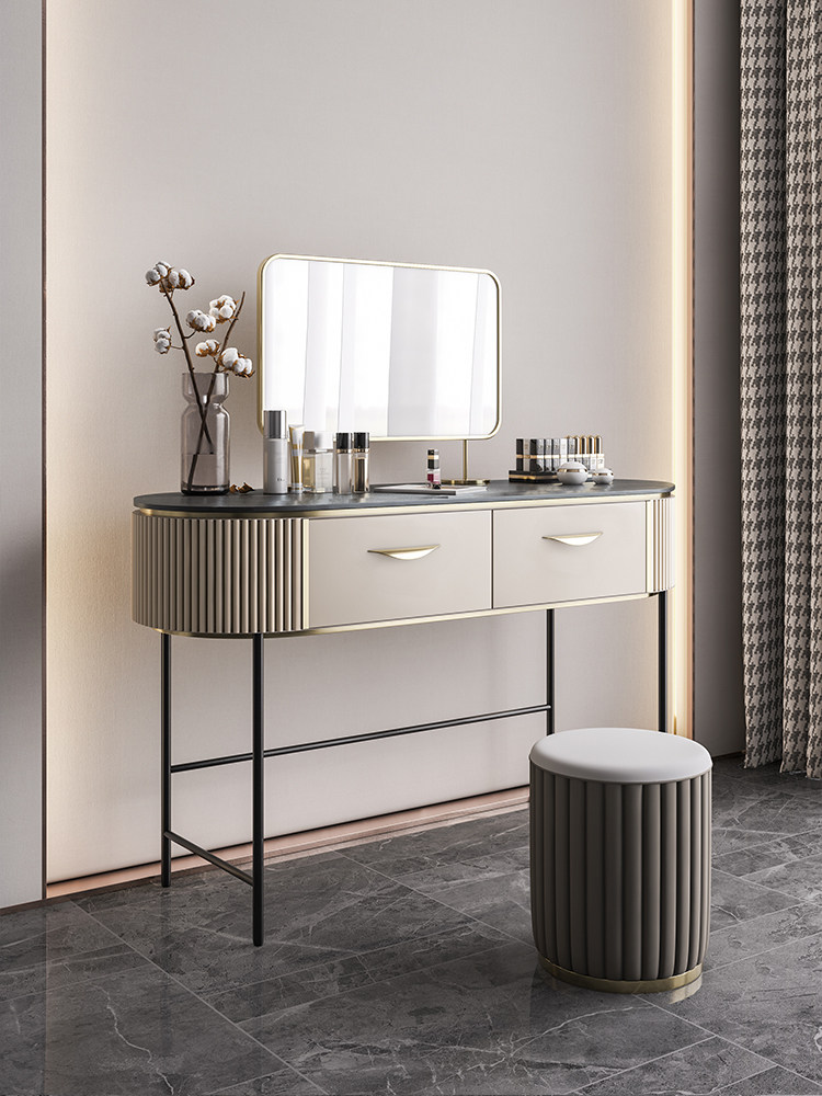 Dressing table TV cabinet integrated combination light luxury dressing cabinet Italian wind rock board bedroom net red dressing table with mirror