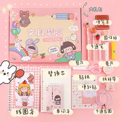 Net red creative cute lucky blind box stationery magic box set opening school gift package cartoon girl heart birthday gift box surprise unpacking box primary school prizes learning children's writing tools blind bag