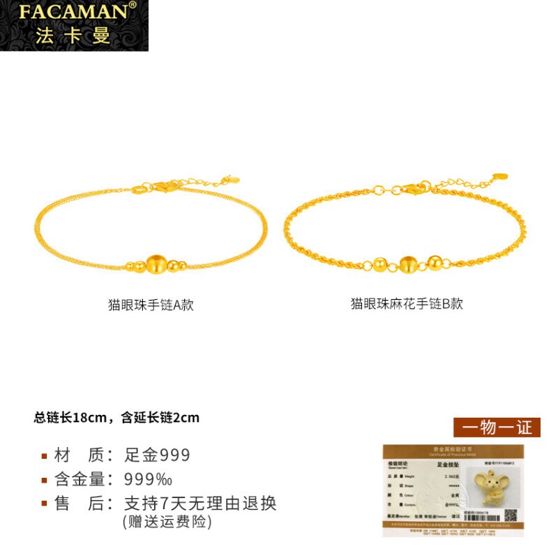 Faqman Gold Handle 9999 gold gold bar 24k gold bracelet pure gold gold bead gold bead bracelet