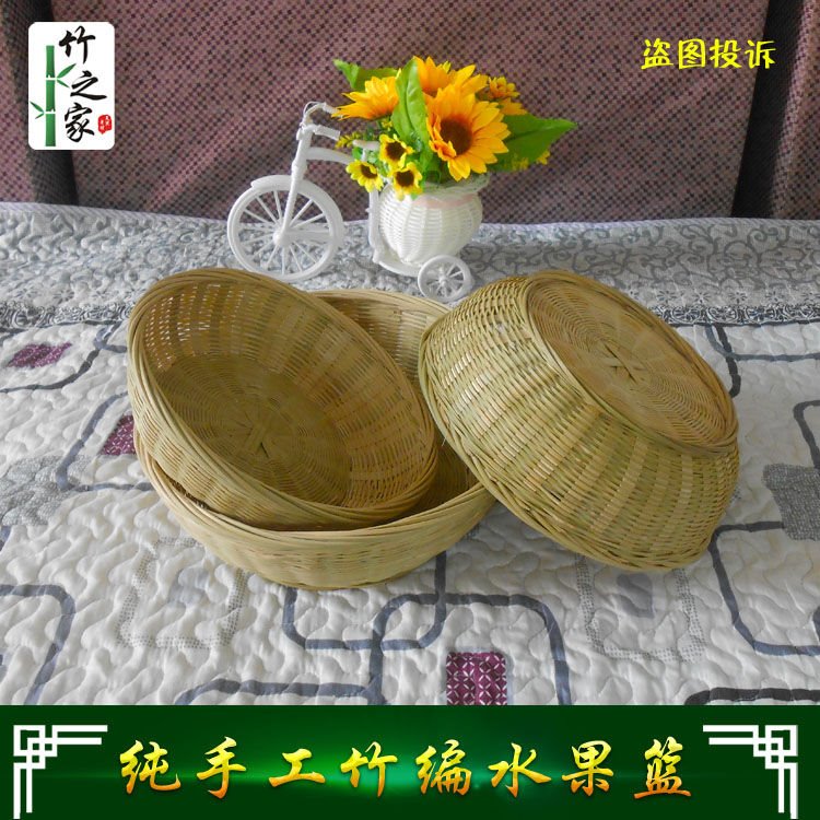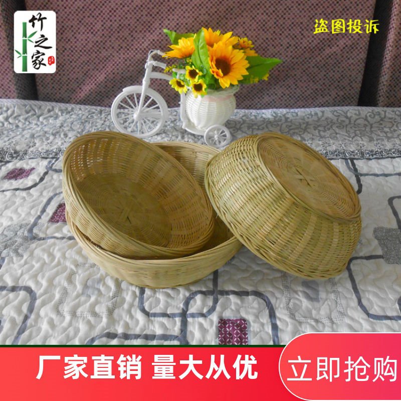 Bamboo-braided basket with handbamboo basket household steamed bamboo basket knitting basket bamboo knitting bumper
