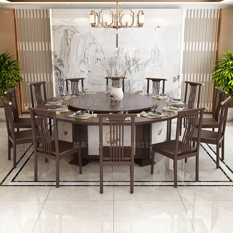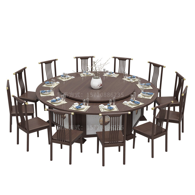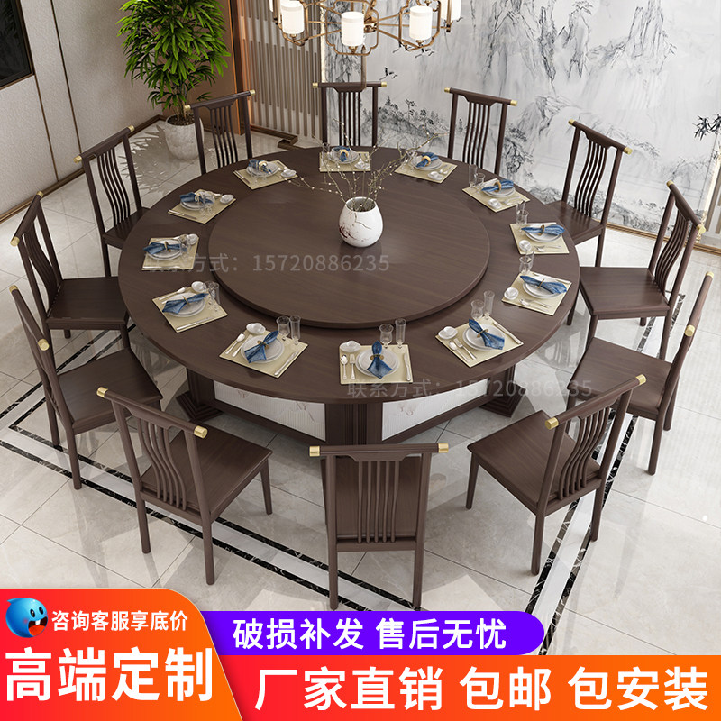 New Chinese Style Hotel Electric Dining Table Big Round Table 15 People 20 Automatic Swivel Pan Dining Table And Chairs Combined Hotpot Table