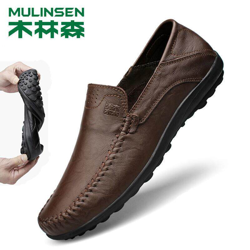 Wooden Linsen soft soft bean shoes soft sole daddy shoes leather shoes leather casual shoes middle-aged man shoes