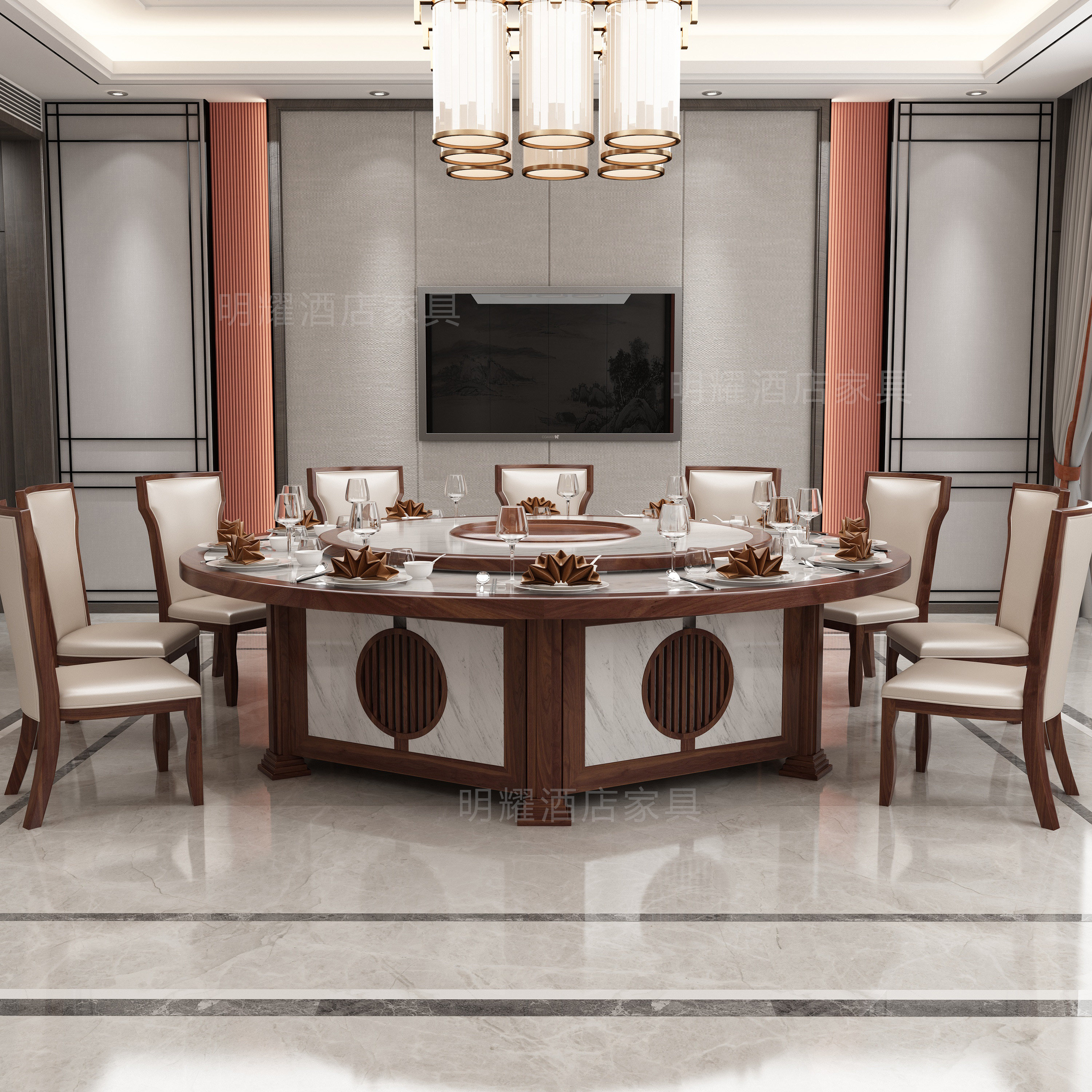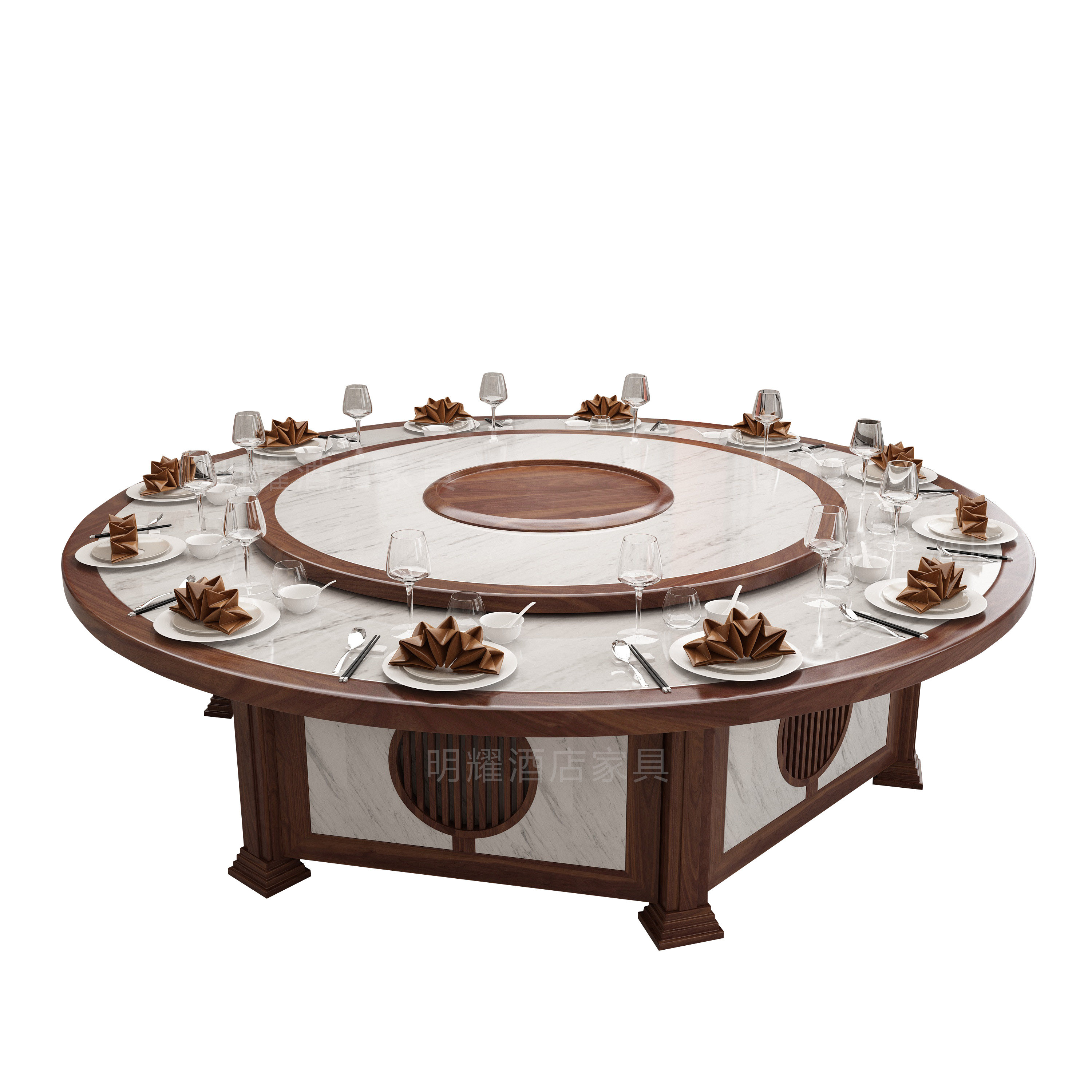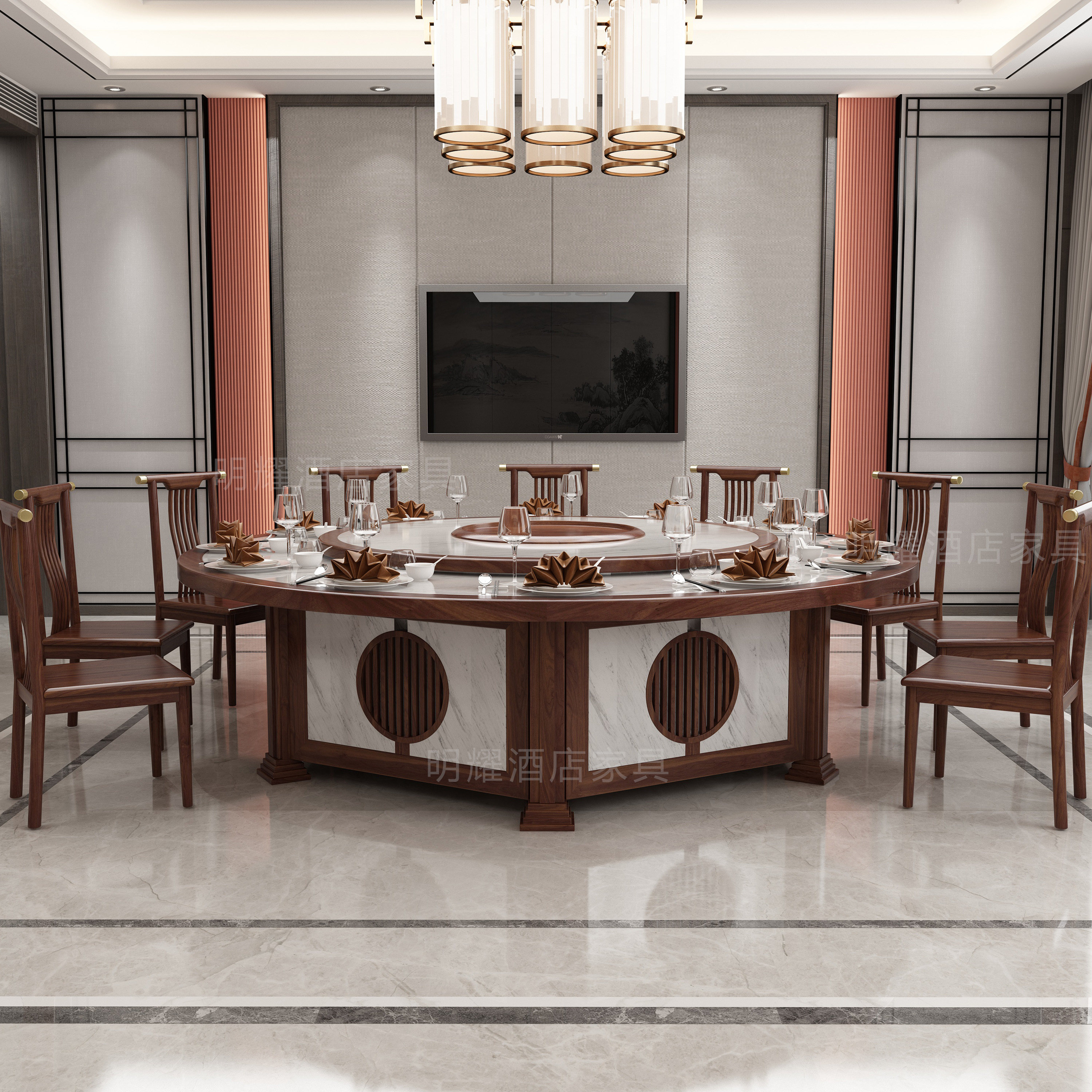 New Chinese hotel dining table Large round table Electric rotating imitation marble 15 20 people Hotel dining room hot pot table