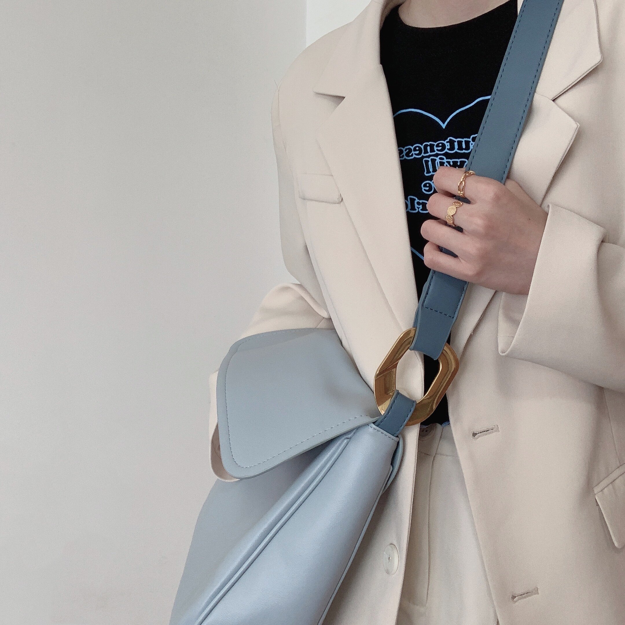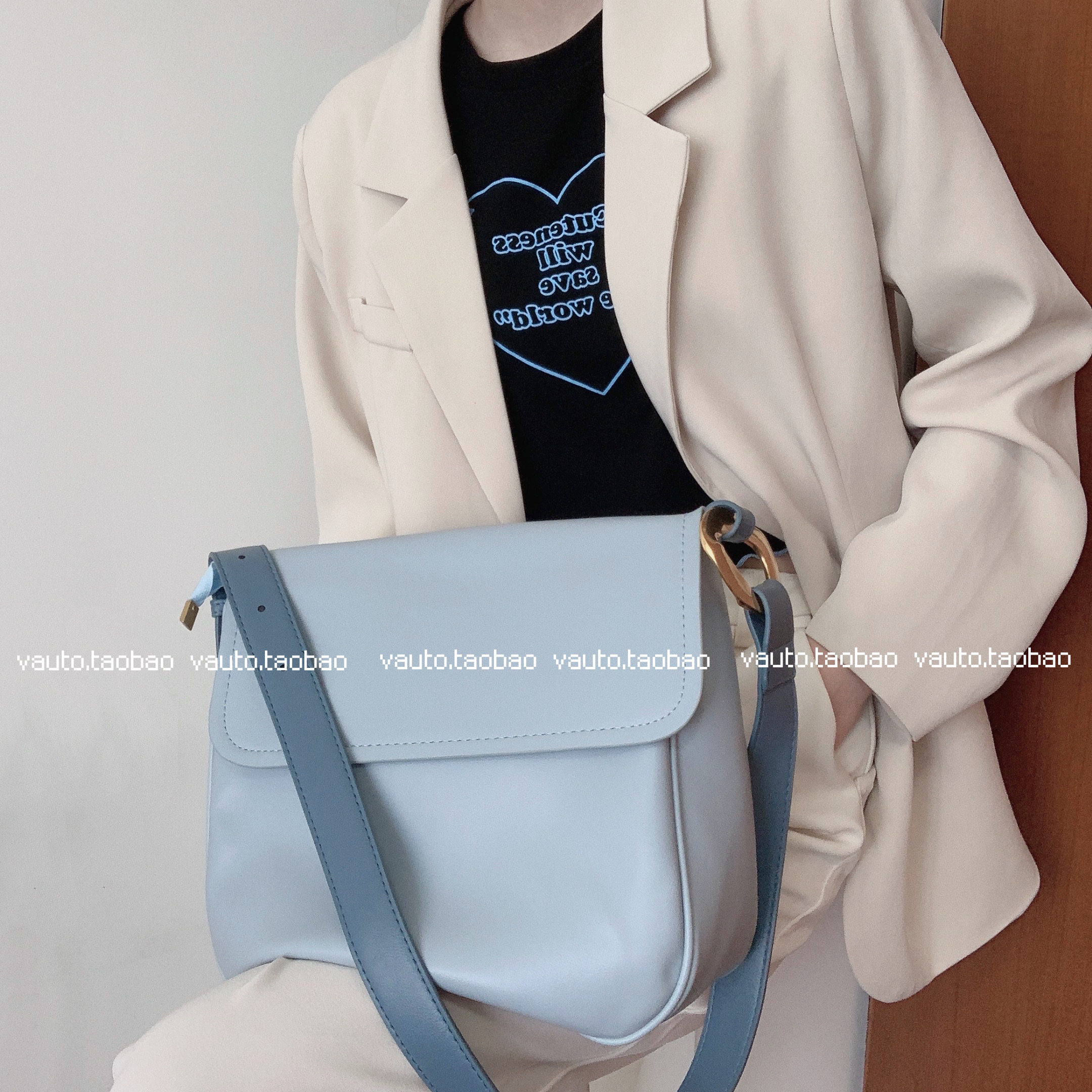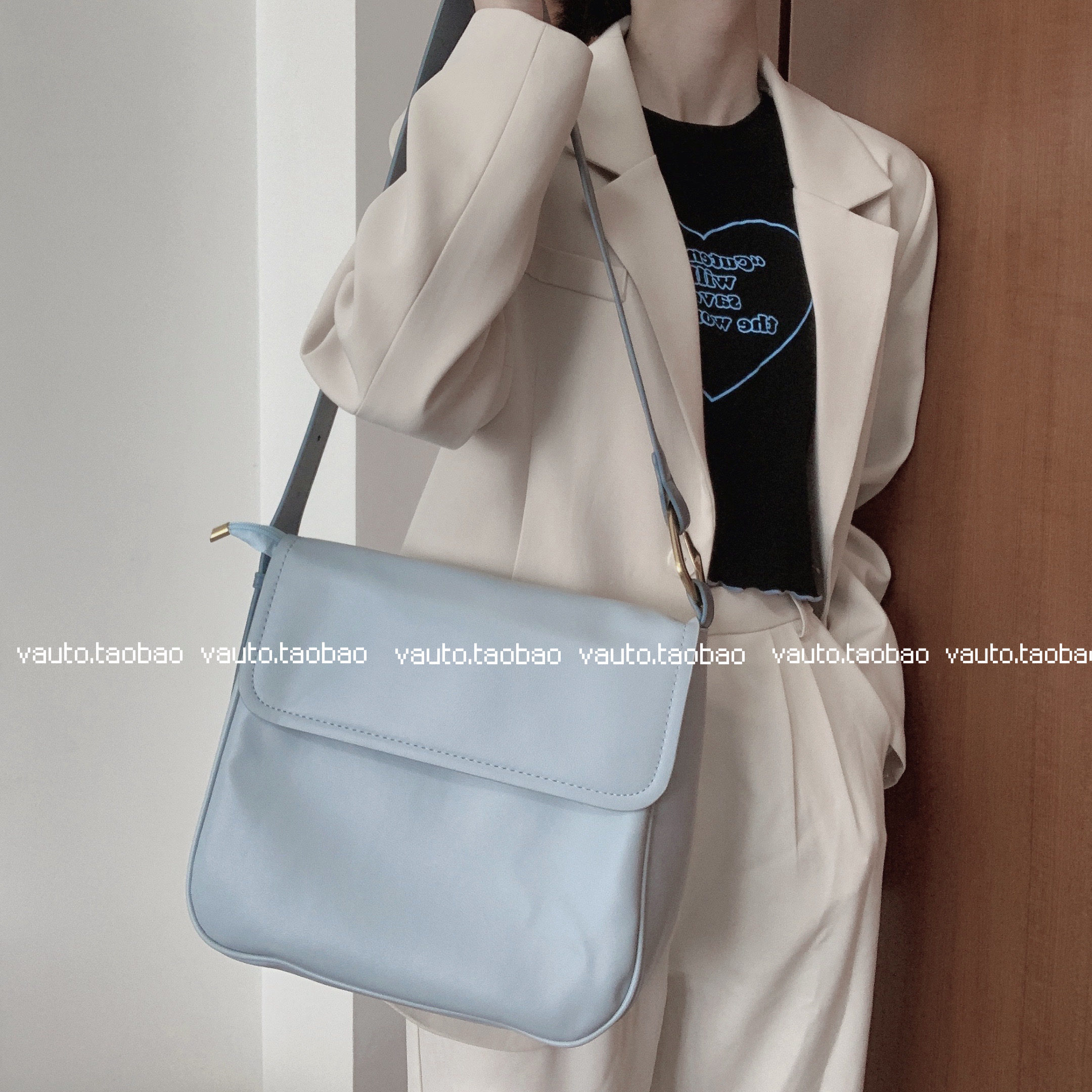 VAUTO Niche Design Collision Color 2021 New Pint Large Capacity Bag Foggy Blue 100 Hitch Commuter Single Shoulder Bag Inclined Satchel Bag
