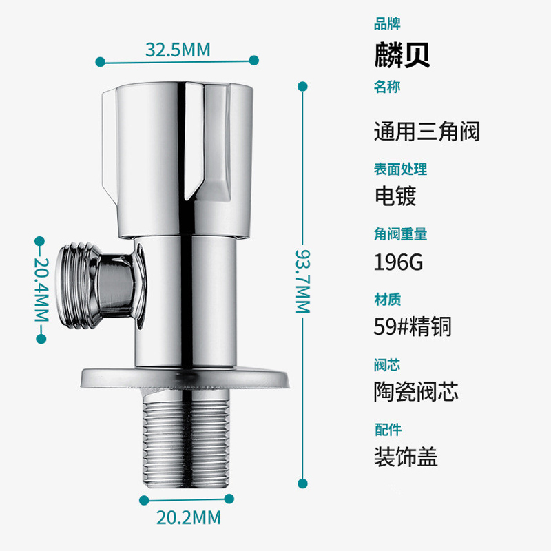 Triangle valve all copper body i cold and hot water valve switch household 4 - minute general toilet water heater inlet valve water inlet valve