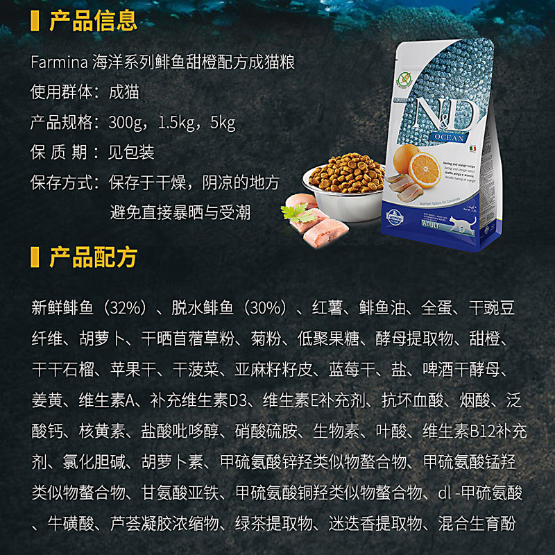 Farmina Farmina grain-free cat food herring sweet orange pomegranate chicken kitten adult cat full-term food 5kg fattening hair gills