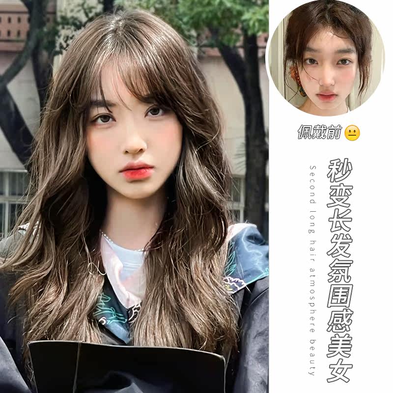 Wig female hair summer natural full head sleeve type large wave long curly hair simulation human hair long hair wig set