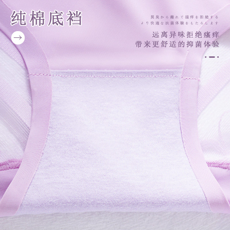 Ice silk girl underwear women's cotton crotch comfortable and seamless mid-waist lace large size summer thin breathable triangle shorts head