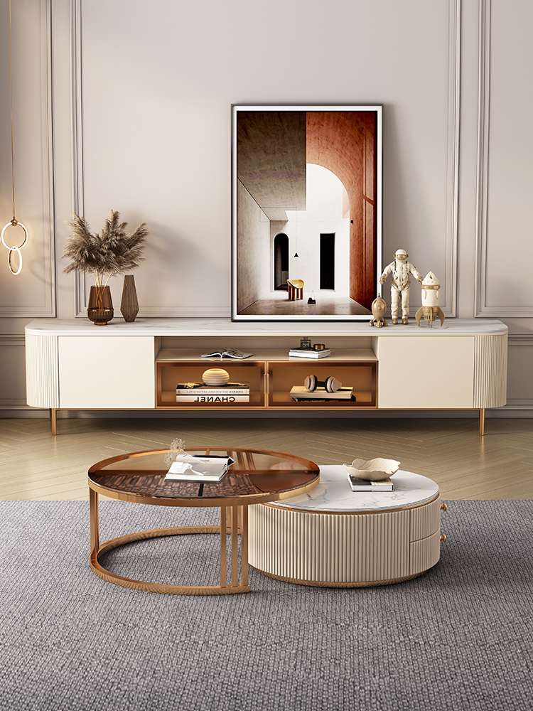 Light luxury bright slate coffee table TV cabinet combination simple modern small apartment living room paint high foot cabinet new
