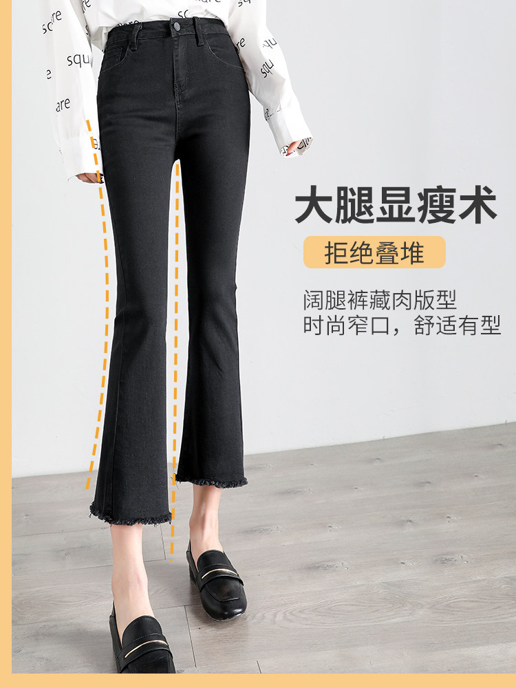 Short wide-legged micro-horn jeans women 2022 new eight-point small tall waist 150cm high waist thin