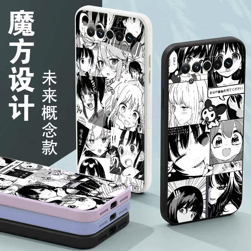 Black and white comic phone protective shell Phantom 18 days Cartoon 18Pro Earth Cool figure 17pro Puzzle Girl Right Angle Side 17 Magic Square Liquid Silicone Square 18X Full Bag Soft Thin Anti-Fall Frosted Cover