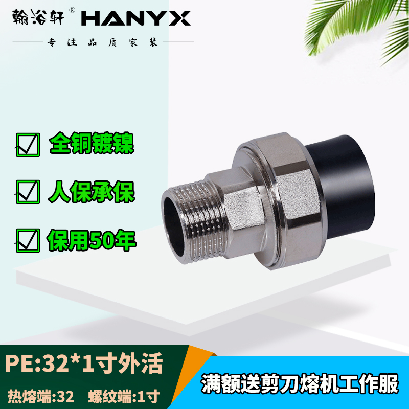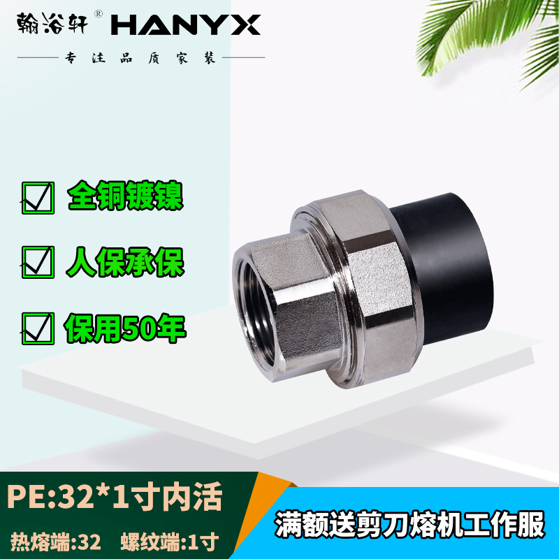 PE all copper black water pipe movable joint 20 four points 25 six points 32 one inch inner tooth outer wire movable joint