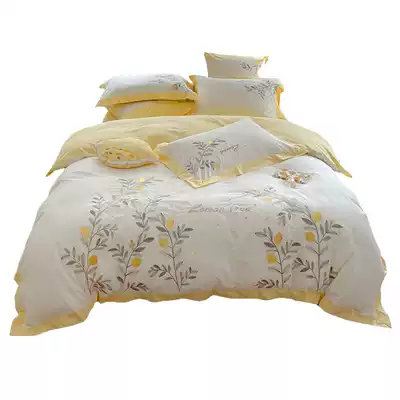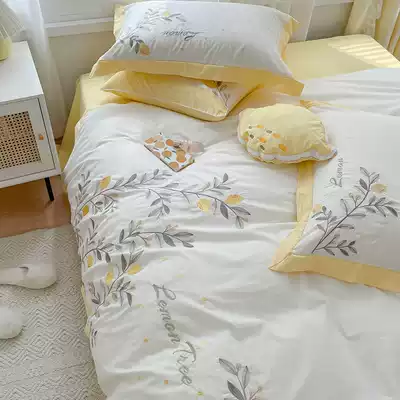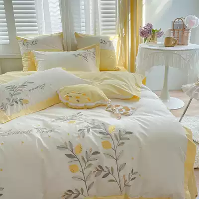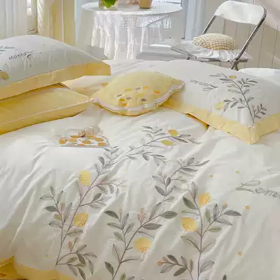 Wash cotton cotton four-piece 100 cotton summer lemon yellow pastoral girl heart sheets quilt cover bedding